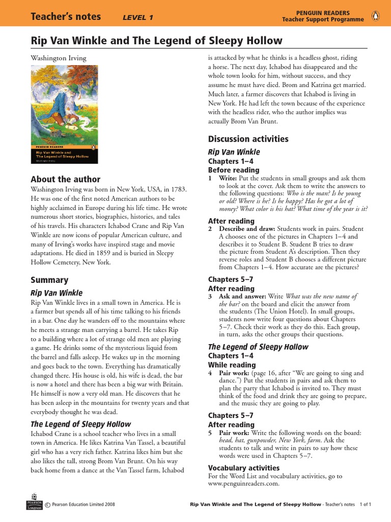 Rip Van Winkle a Posthumous Writing of Diedrich Knickerbocker By Woden God of Saxons From whence comes Wensday that is Wodensday Truth is a thing that ever I will keep Unto thylke day in which I creep into My sepulchre CARTWRIGHT. 2 Publishers Note We are happy to make available this Teachers Guide to the Core Classics version of The Legend of Sleepy Hollow Other Tales by Washington Irving. It was a short old man with wild grey hair and grey.